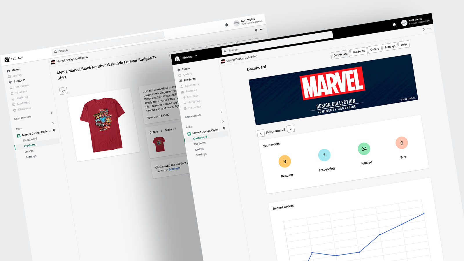 Sunrise Integration is proud of the successful execution of this high-profile project for Disney and Marvel. The Shopify app was designed to seamlessly bring licensed Marvel merchandise to Shopify merchants everywhere. Our team crafted a service that has the flexibility to evolve with emerging trends and user behaviors. Key accomplishments from this project include streamlining the user experience, implementing state-of-the-art API integration and providing user's with data analytics for enhanced decision-making.