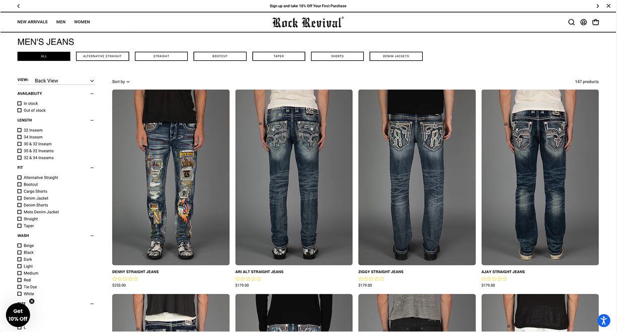 The brand also sought to refine their online shopping experience by introducing more advanced ecommerce features that would improve product discovery and drive conversions. Customizing collection pages with refined filtering options became a key priority to enhance the user journey. Additionally, Rock Revival wanted to optimize their site's design to better reflect their brand identity while maintaining high performance and ease of navigation.