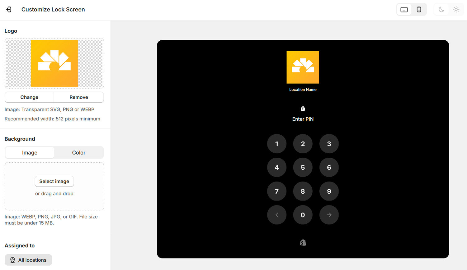 Customize the appearance of the Idle Screen by uploading a logo and background media via the Display Editor in your Shopify Admin. Choose from any of your existing images or upload all new media. The new updates are available now in the Shopify POS settings.